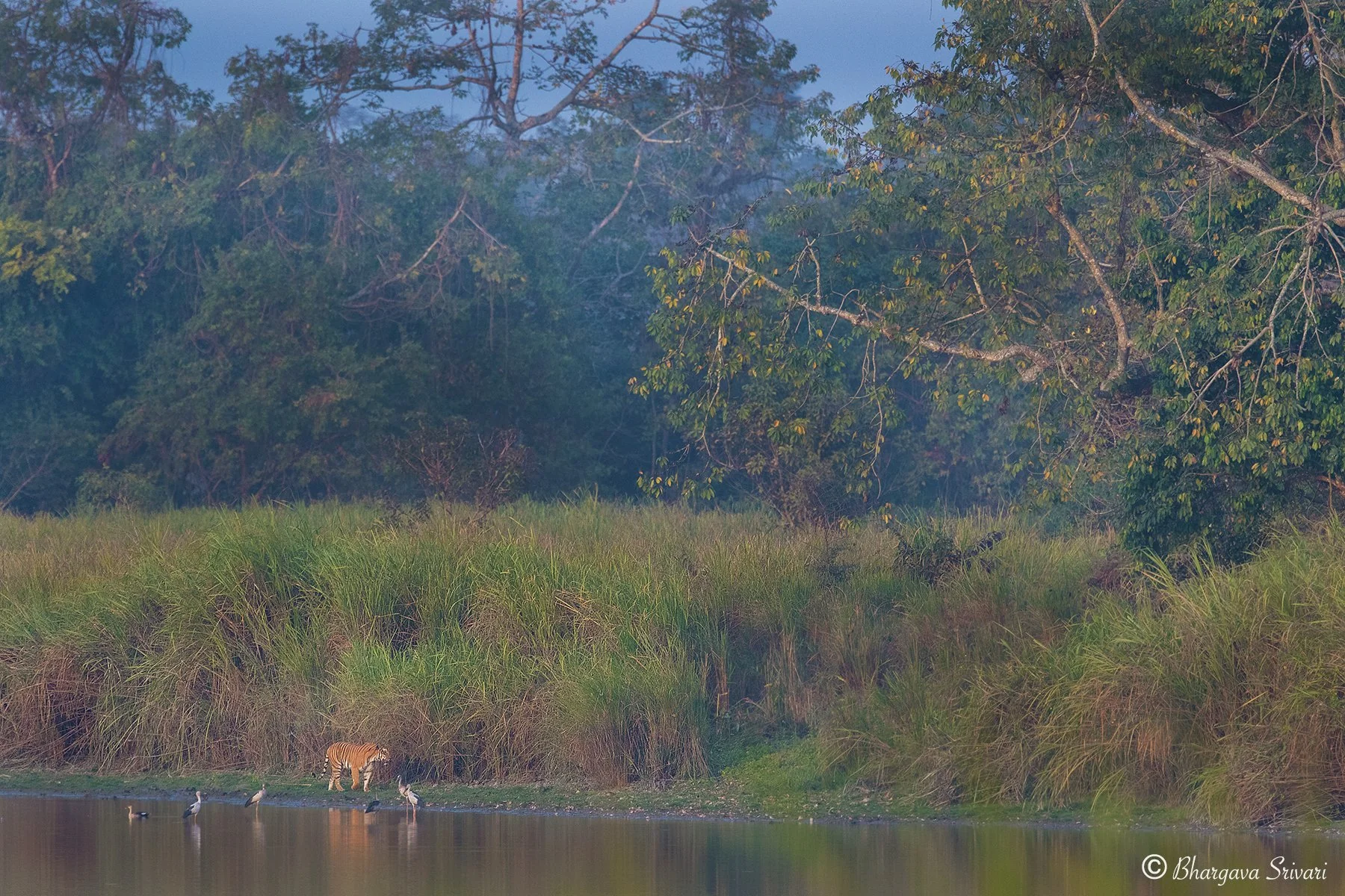 We will spend the next two days on board our boat exploring this complex network of tidal creeks, mud flats and small islands with freshwater ponds looking for wildlife. Being a transition habitat between terrestrial and aquatic we have good chances at seeing saltwater crocodiles, water monitors, 2 species of otters, 2 species of dolphins, hawksbill and green sea turtles, a myriad of birdlife and of course the tiger.